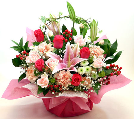 アレンジメントと花束例